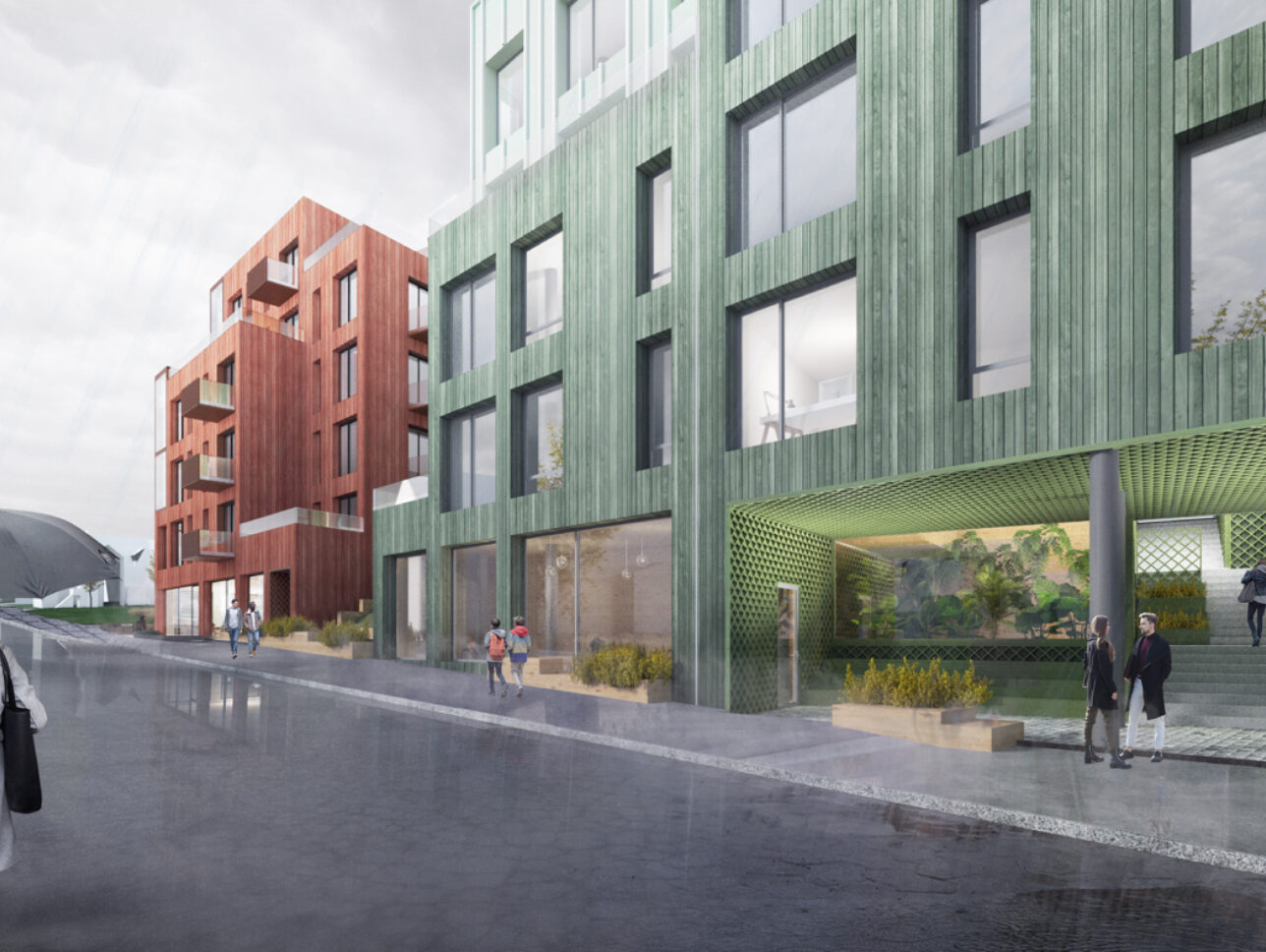 Prosjektet består av tre bygg med varierende høyder og uttrykk, tilpasset den omkringliggende bebyggelsen og kulturmiljøet. Den åpne strukturen gir luft, lys og utsikt, og skaper gode møteplasser både for beboere og byens innbyggere. Her legges det til rette for felles vinterhage, takterrasser, bibliotek, verksted og sosiale soner – funksjoner som fremmer fellesskap og trivsel på tvers av generasjoner.